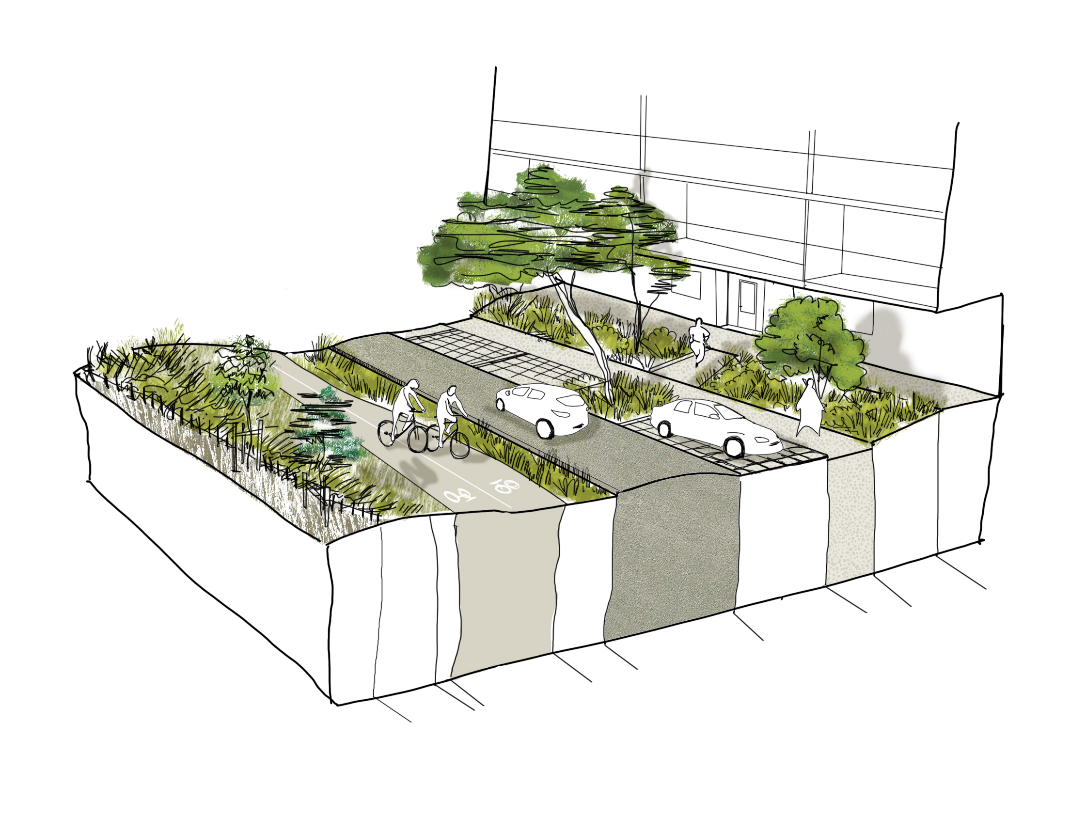 Le projet mise sur ce mouvement et propose d’en tirer parti en transformant le boulevard et l’avenue en un parc littoral qui trouve ses prolongements dans la baie.